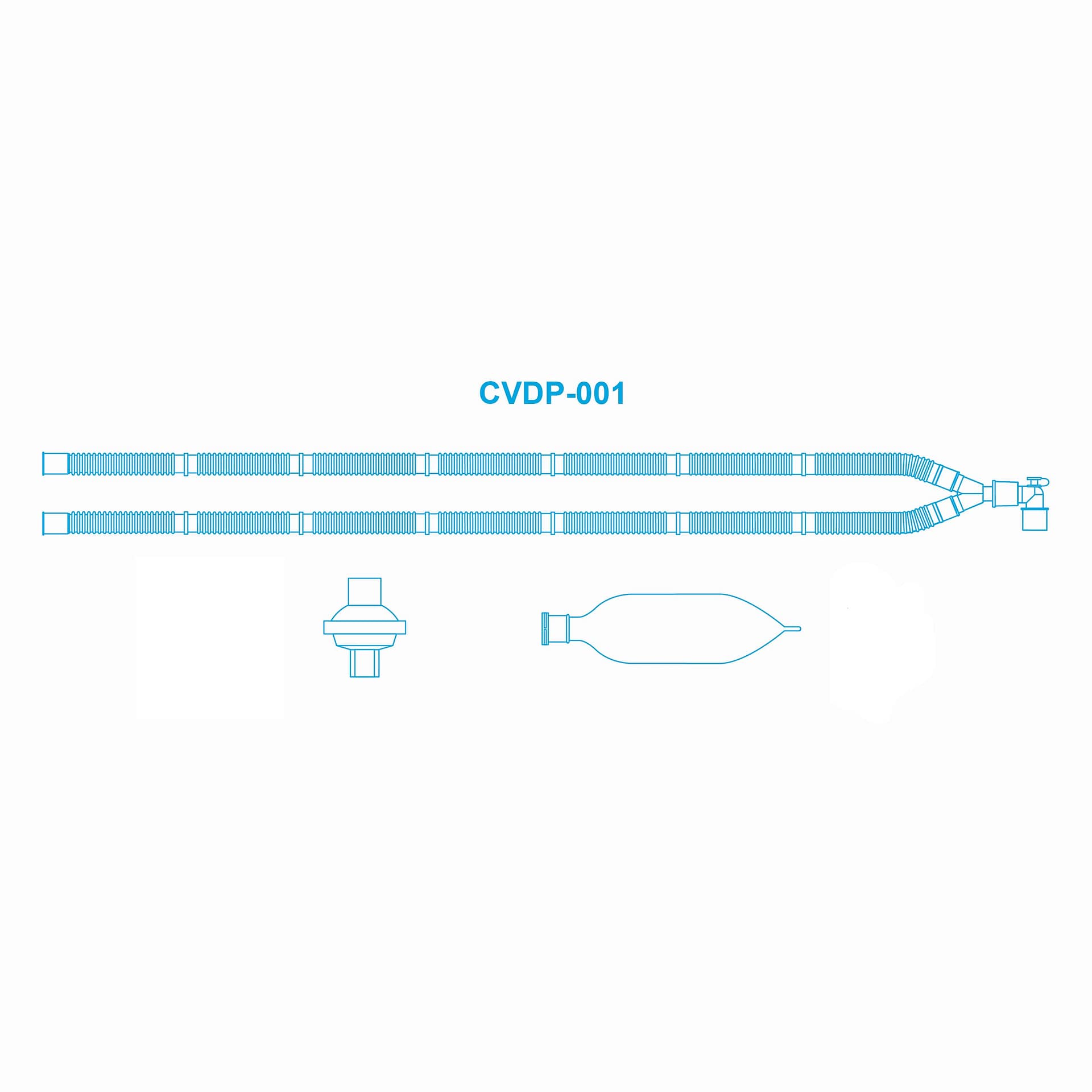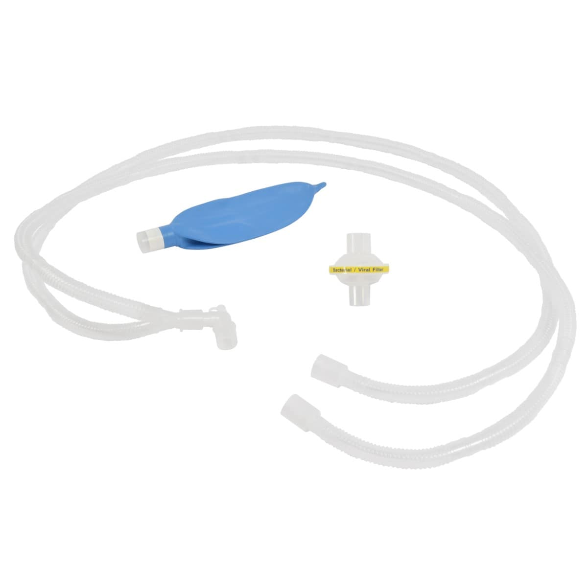 Nuestro circuito de anestesia está compuesto por dos ramas las cuales son unidas por un adaptador en Y puede o no incluir una mascarilla de colchón No. 3 para suministrar los gases anestésicos de manera no invasiva, así como un filtro antibacterial / viral que protege del 99.9% de virus y bacterias al paciente. Así mismo, incluye su bolsa de reinhalación de 1 litro.