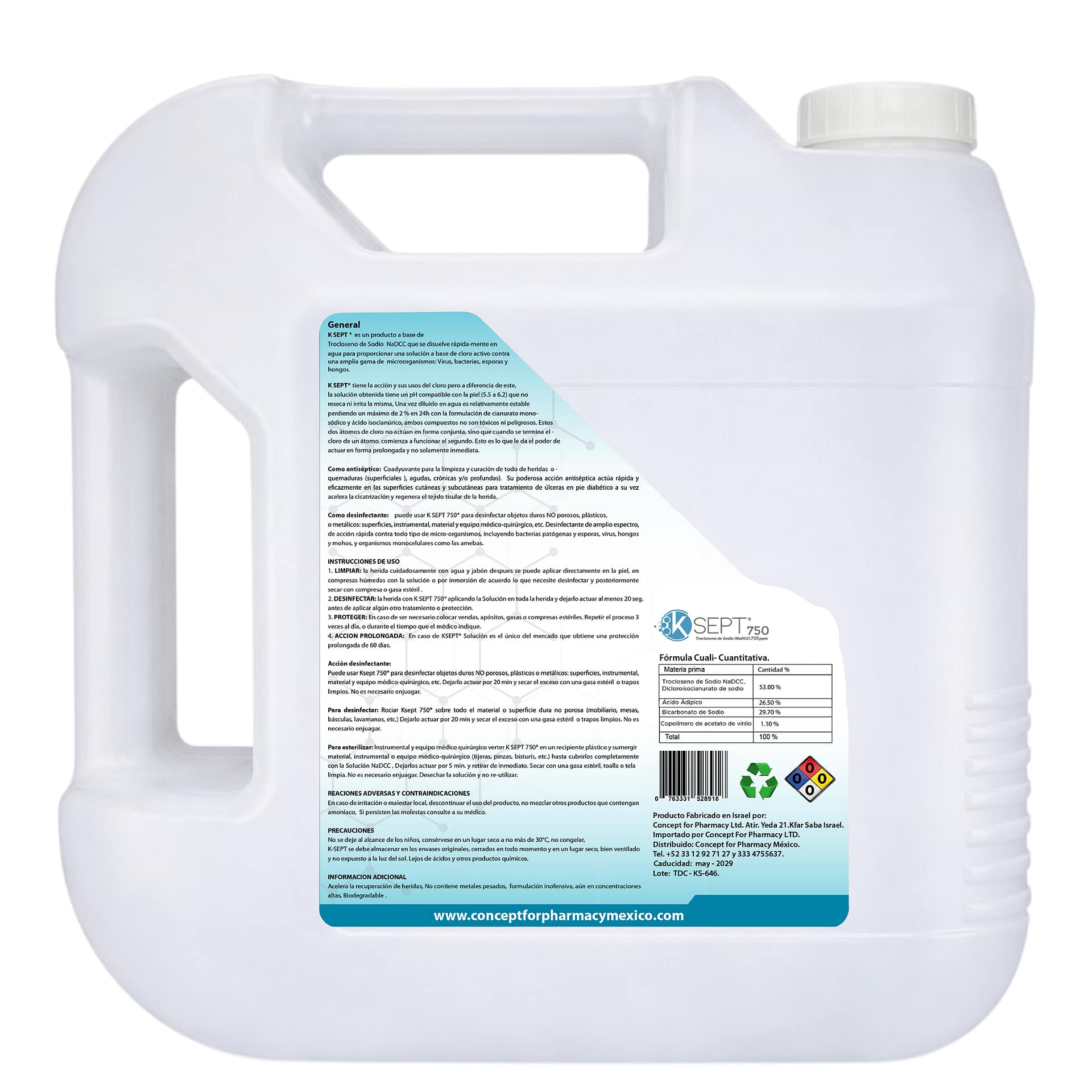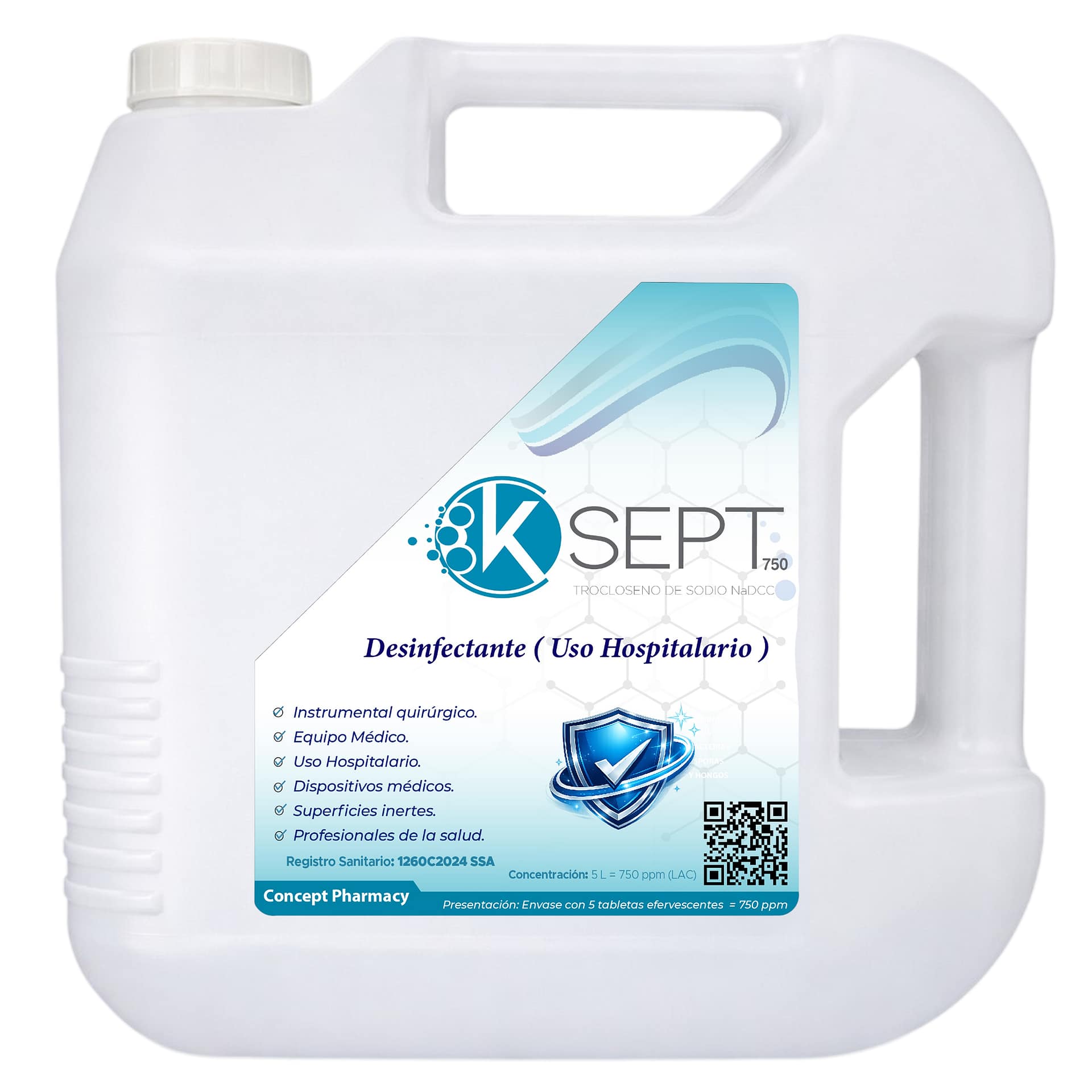 K Sept 750 ppm trocloseno de sodio nadcc envase 5 litros