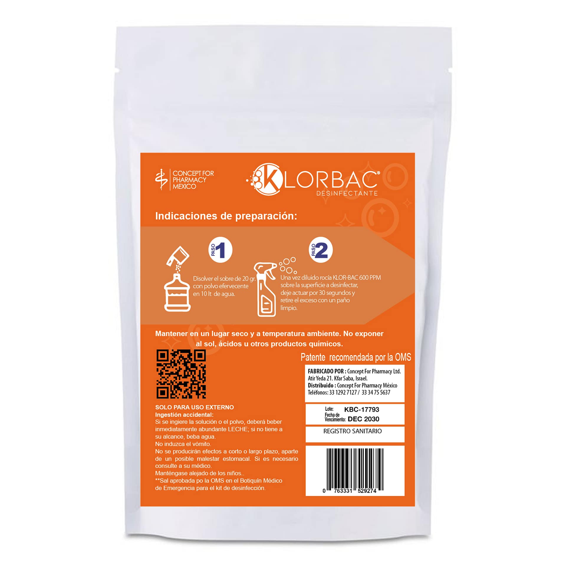 - Denominación definitiva: KLOR BAC 600 ppm (granulado)