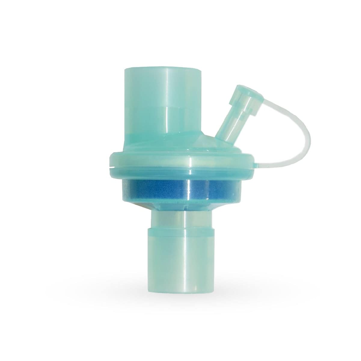 También se le conoce como filtro humidificador, y se conecta entre la mascarilla o tubo del paciente y el circuito de ventilación o anestesia. Cuenta con un puerto Luer para toma de muestra de CO2 de capnografía y puerto para inyección de la solución humificadora.