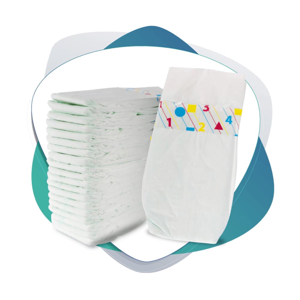Artículo desechable de color blanco con figuras infantiles en uno de sus extremos,elaborado con propiedades absorbentes, dispersantes, retentivas y de protección.